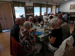Into Woodstock this morning with Noel's pickup and picked up some sheeting and shingles etc to replace the roof on the shed that was here when we bought the place - the shingles are gone and the sheeting is wet and rotting. After I unloaded Noel, Damien & Payton here with our vehicle and took his pickup and took Damien to his karate. I then moved our satellite dish from the shed roof to the eave and then started stripping the shingles off the shed roof and after breakfast got back at it. Noel dropped Damien here and he is here for a sleepover - Payton is having a girls night for her birthday at Tammy's. Damien up on the shed roof with me to help pop. After I got all the shingles and sheeting off I used the park trailer to take it down to the end of the park - sheeting in the fire pile & shingles in the dumpster. Jerry dropped in for a refreshment and we then went to the park chalet for a BBQ in memory of John McDonald - him & his wife were full time RVers who stayed in the park during the summer and he passed away in July of this year. Relaxing now and watching a movie with Damien.