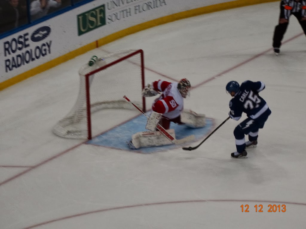 Out for a few laps around the park this morning. After breakfast I walked to the golf course and played 18 holes of golf with the park league. When I got back home we went to Tampa and had supper and then to the Red Wings / Lightning hockey game. Great arena and great game even though our Wings loss in a shootout.