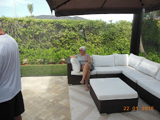 Me, Ruby, Maryann, Darrell, Teresa & Lawrence left the park in our vehicle this morning at 8 am, stopped for breakfast at IHOP and arrived at our AirBnB in Marco Island at 12 noon. What a awesome place. Got settled in and then went for lunch before heading to the beach for a couple of hours. On the way back to the house we stopped to pick up some groceries and then back for a few refreshments and a swim in the pool before supper. After supper we relaxed outside on the pool deck enjoying the warm evening