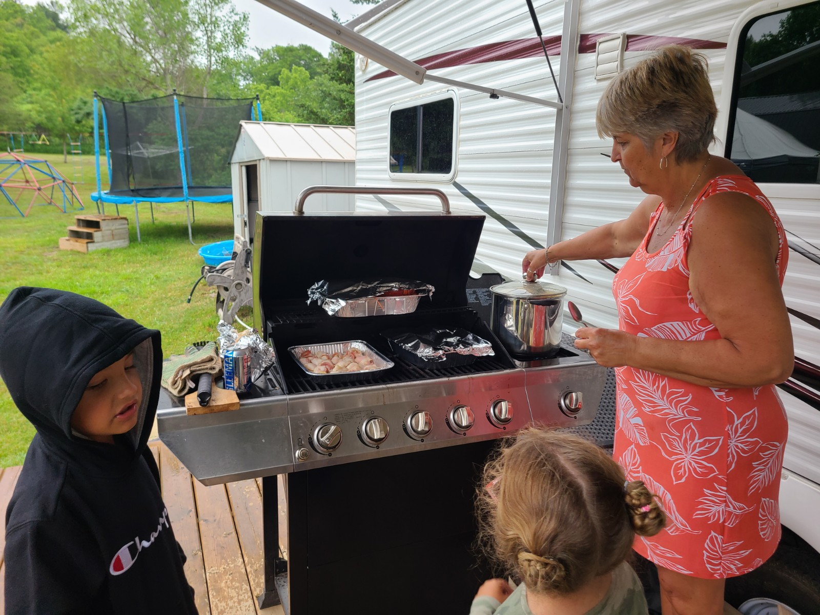 Up with the grandkids this morning and when gramma's shift started I went for a walk. In the afternoon gramma got a great seafood supper ready and we cooked / warmed it on the BBQ - quite the feed.